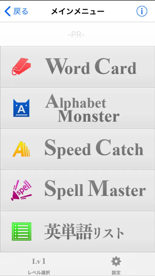・「発音再生」で、選択したレベルの単語及び全ての単語を聞き流す事もできます。