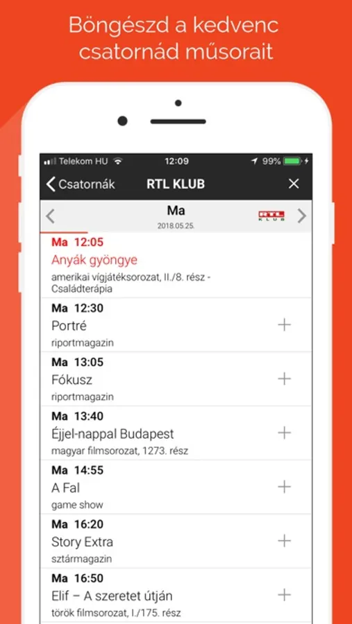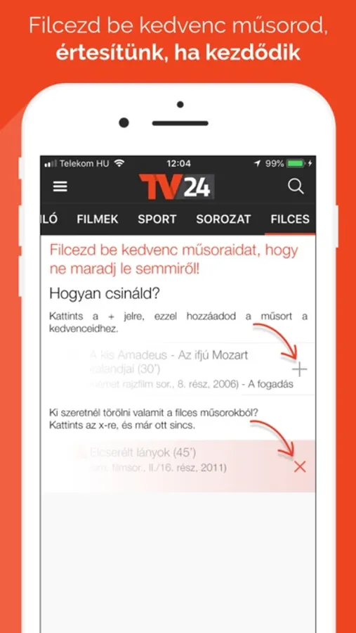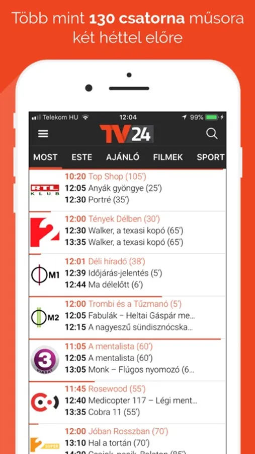 A TV24 egy személyre szabható tévéműsor alkalmazás, melyben kiválaszthatod és sorba rendezheted kedvenc csatornáidat, és értesítést kérhetsz a műsorokról, amelyekről nem szeretnél lemaradni.