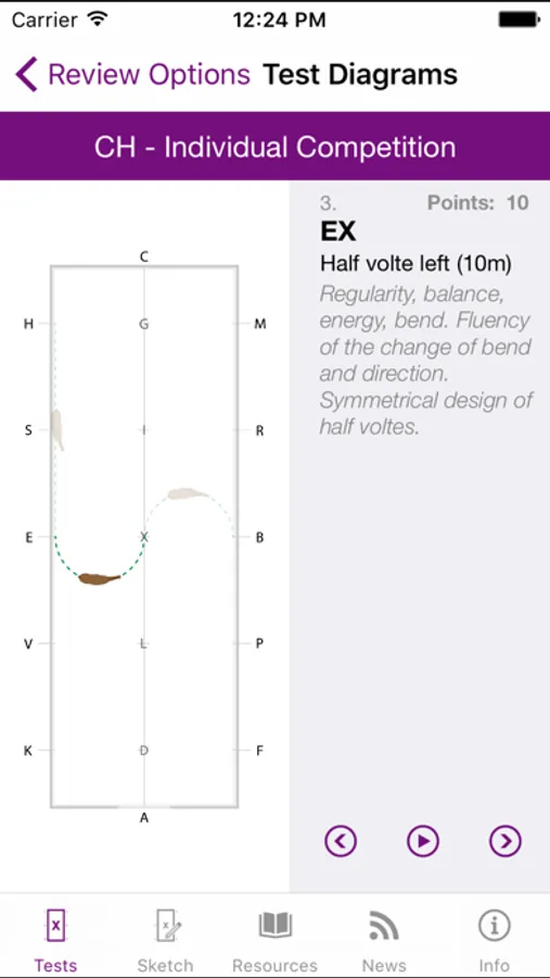 • Review dressage arena diagrams that animate through the movements within a test