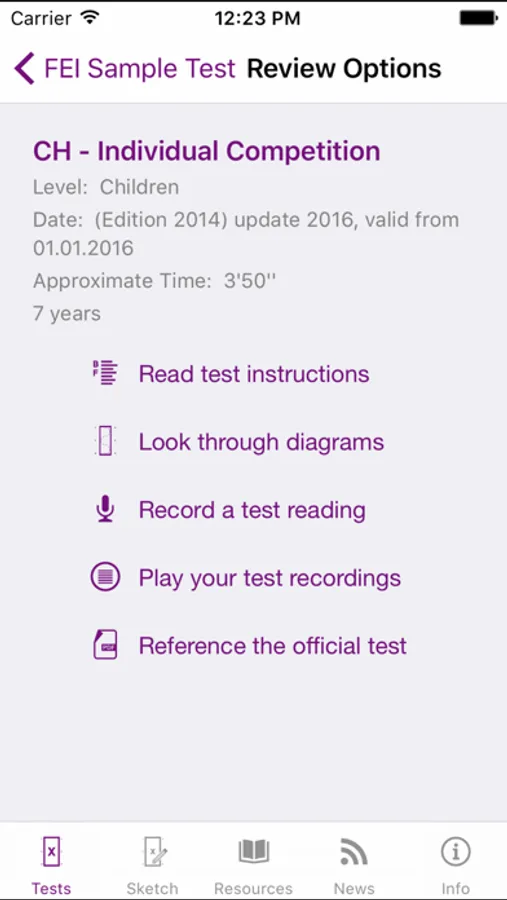 Evaluate the App features for free, then decide which FEI EquiTests collection is right for you. FEI EquiTests 1 allows you to explore the features with one sample test - the FEI Children's Individual Competition Test.