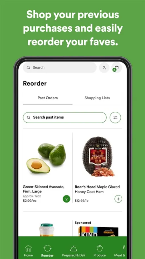 • Shop your previous purchases, create lists, and easily reorder your faves.