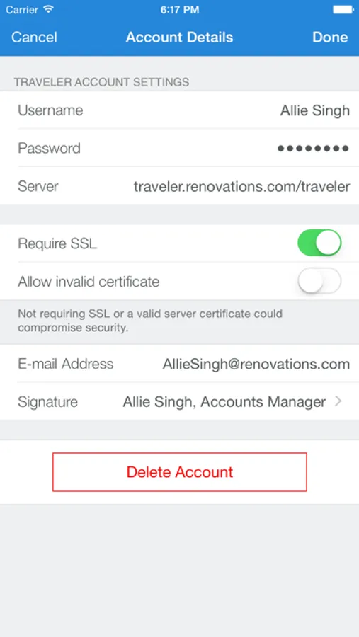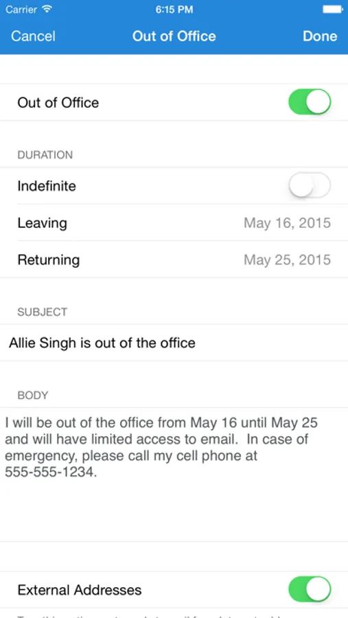Forget to let co-workers know you'll be away on vacation? You can now use Companion to update your Out of Office settings. (Traveler server 9.0.0.1 required.)