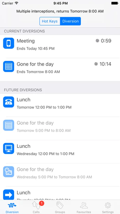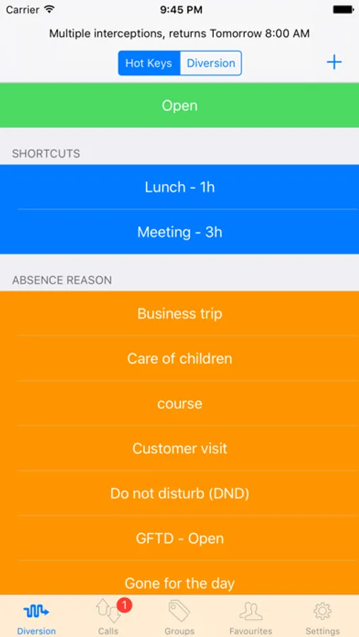 * Divert your phone with hot keys you can create in Presentity App or Presentity Web