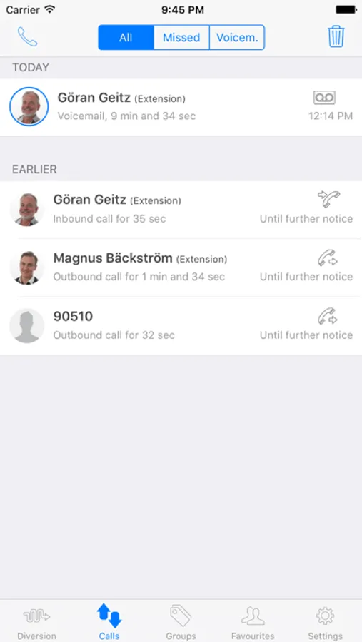 * Administrate your voicemail (listen, forward, archive and delete)