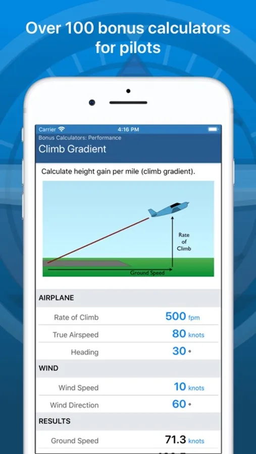 The app includes over 800 illustrations and images. It also now includes over 110 aviation calculators integrated into the content and standalone.