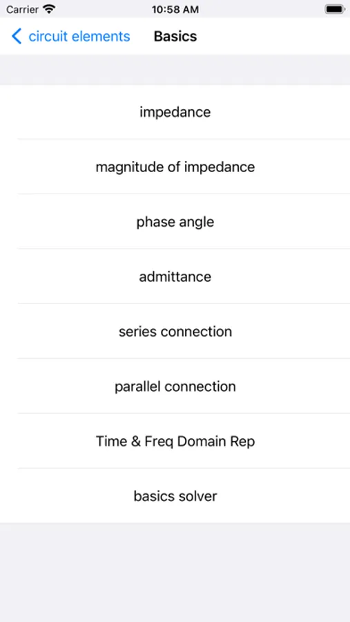 Circuit Elements is an application intended for undergraduate college students majoring in electrical engineering. It is a quick reference to basic circuits topics such as: