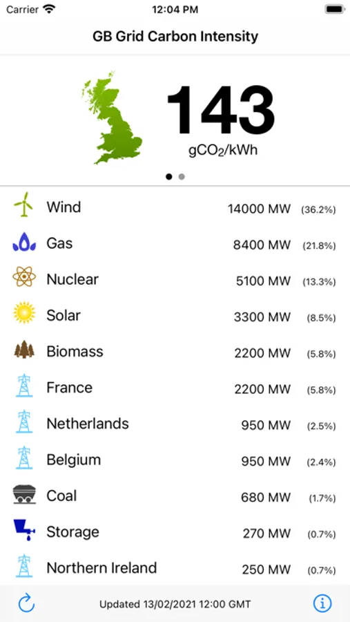 Track the carbon intensity of the GB electricity grid on your iPhone or iPad