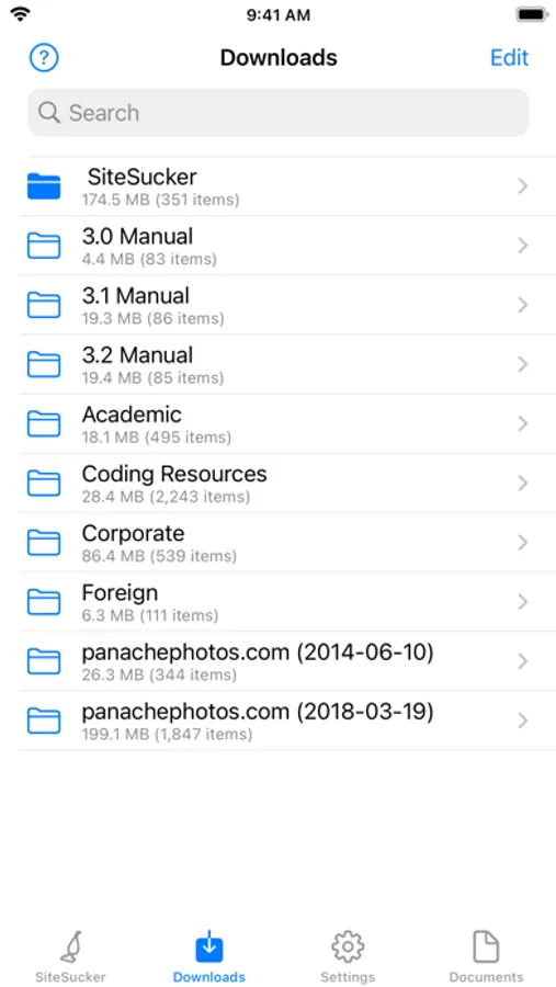 SiteSucker is an iOS app that automatically downloads websites from the Internet. It does this by copying the site's webpages, style sheets, images, PDFs, and other files to your iOS device, duplicating the site's directory structure. When SiteSucker downloads a webpage or style sheet, it scans the file for links and downloads the links. SiteSucker "localizes" the pages it downloads, allowing you to browse a site while offline.