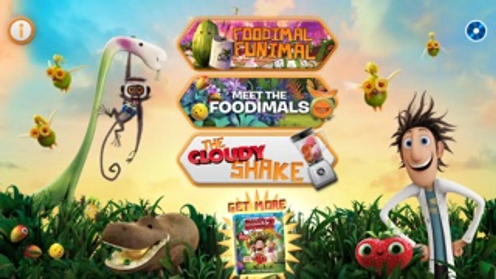 Flint, Sam and the gang saved the Foodimals in Cloudy with a Chance of Meatballs 2, now it's your turn! The Cloudy Shake is getting the ultimate upgrade to become the Foodimal Funimal app and with your Cloudy With A Chance of Meatballs 2 Blu-ray™, you can interact with 5 all new activites and unlock all your favorite foodimals!