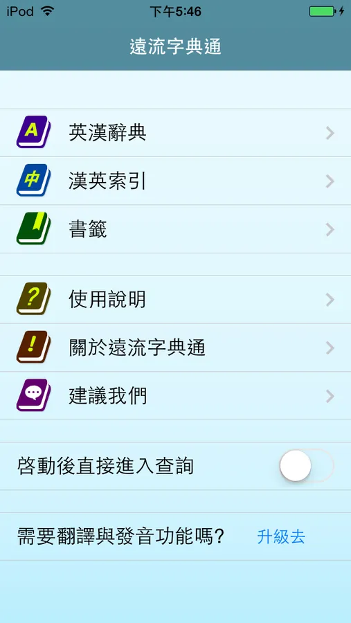 9.整合In-app Purchase機制,可以在軟體內透過App Store購買升級版,取得全文翻譯與發音的功能。