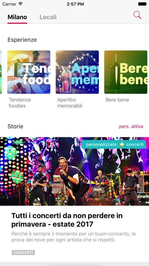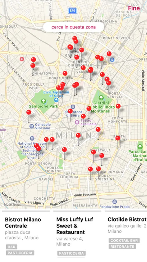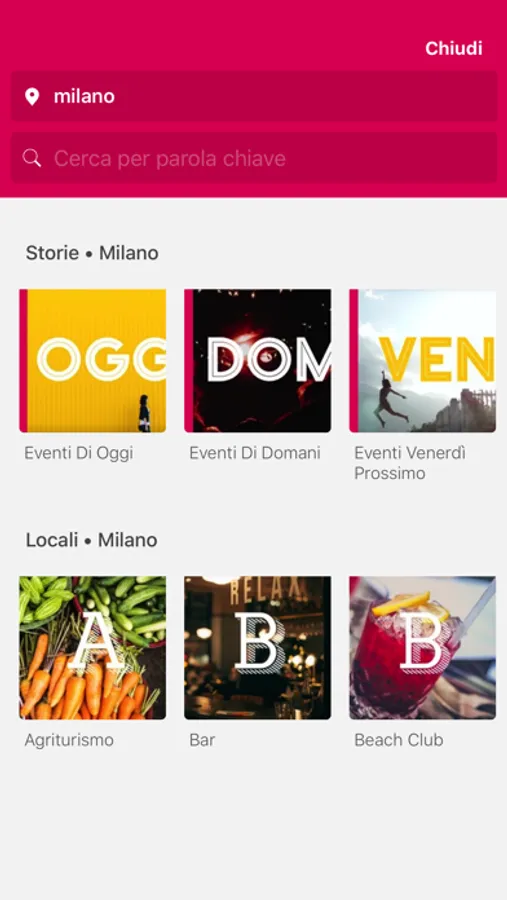 - cerca un locale, un ristorante o un evento vicino a te grazie al GPS dell'iPhone o scegliendo una zona.