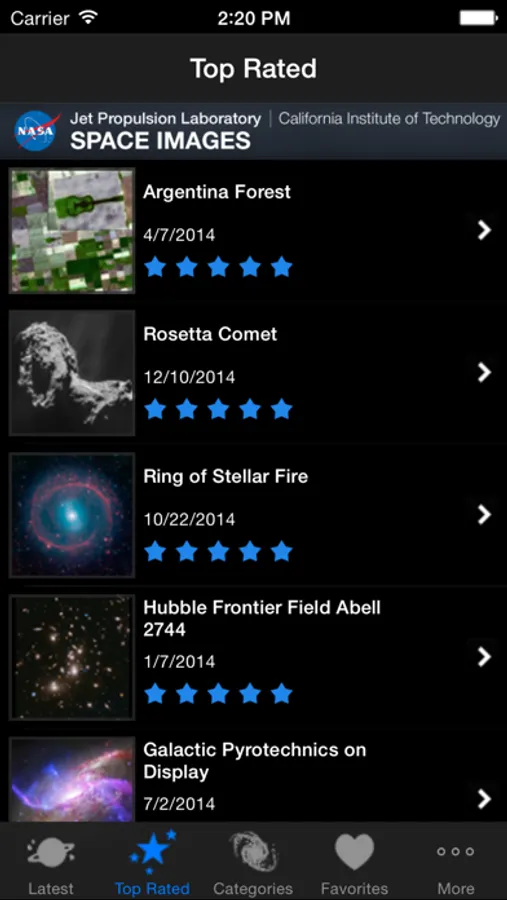 NASA/JPL's Space Images app offers a unique view of the sky via hundreds of images taken by spacecraft studying planets, stars, galaxies, weather on Earth and more. Save to your device as backgrounds or wallpaper and share them with friends on Facebook, Twitter and email as you scan through our extensive photo albums and rate your favorites.