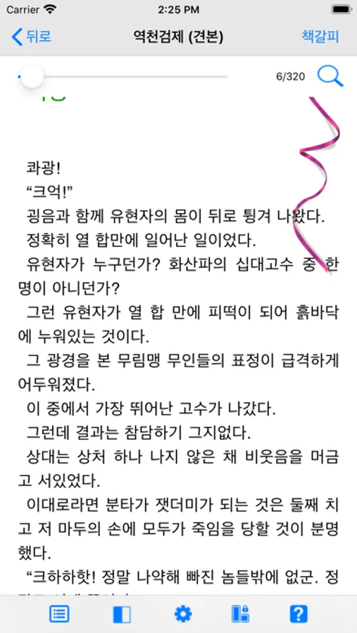 - 책을 연 후 화면의 오른쪽을 탭하면 다음 내용을 볼 수 있고, 왼쪽을 탭하면 이전 내용을 볼 수 있습니다. 화면 중앙을 탭하면 메뉴를 볼 수 있습니다.