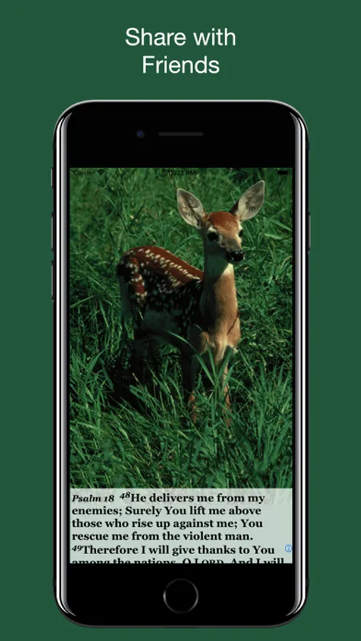 For over 3,000 years the Psalms have been a source of spiritual encouragement and comfort, and are as relevant today as when they were written. Verses from the Psalms are displayed and matched with images from nature. For devotional use or a quick spiritual lift during a busy day, this app will be a blessing to you, plus you can share it with your friends via Facebook or email. Use the notification feature for an automatic daily reminder.