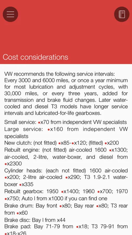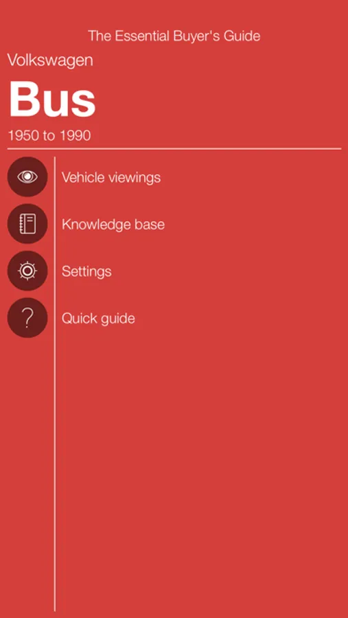 Covering all the collectable Buses produced by Volkswagen between 1950 and 1990, this App is unique in providing the full story of the high points and pitfalls of buying such models. Written by enthusiasts, the easily readable text is informative to the novice, while still being of considerable value to those who have already owned a Bus.