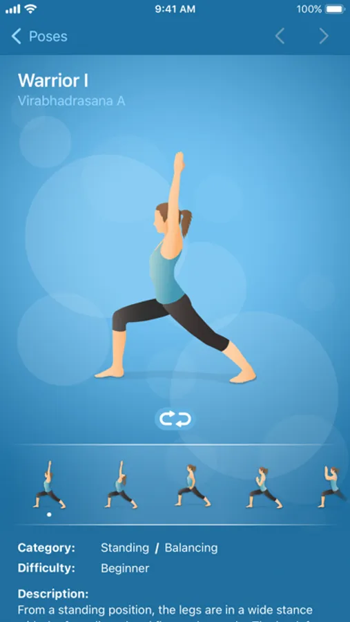 Choose between 27 different sessions of varying duration and difficulty. Learn the poses with the pose dictionary containing detailed explanations of the correct posture, alignment, and benefits.