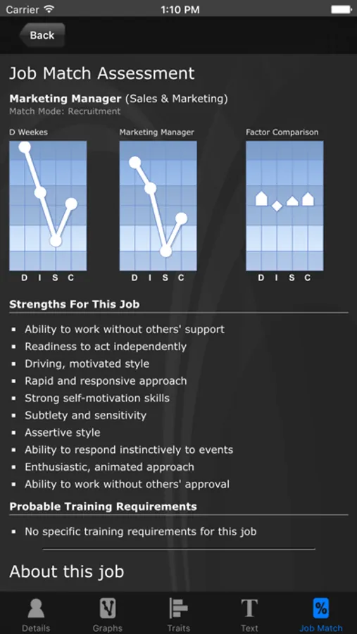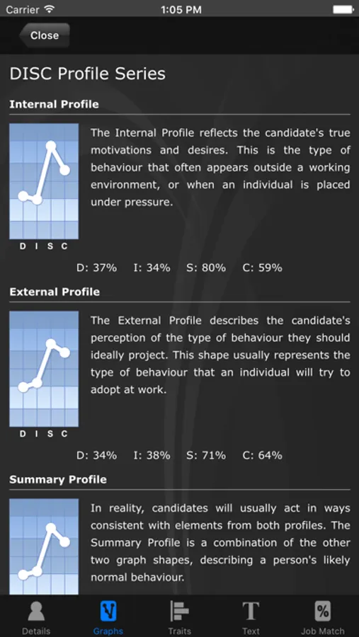 - Create profiles directly through your iPhone using a choice of DISC questionnaires.