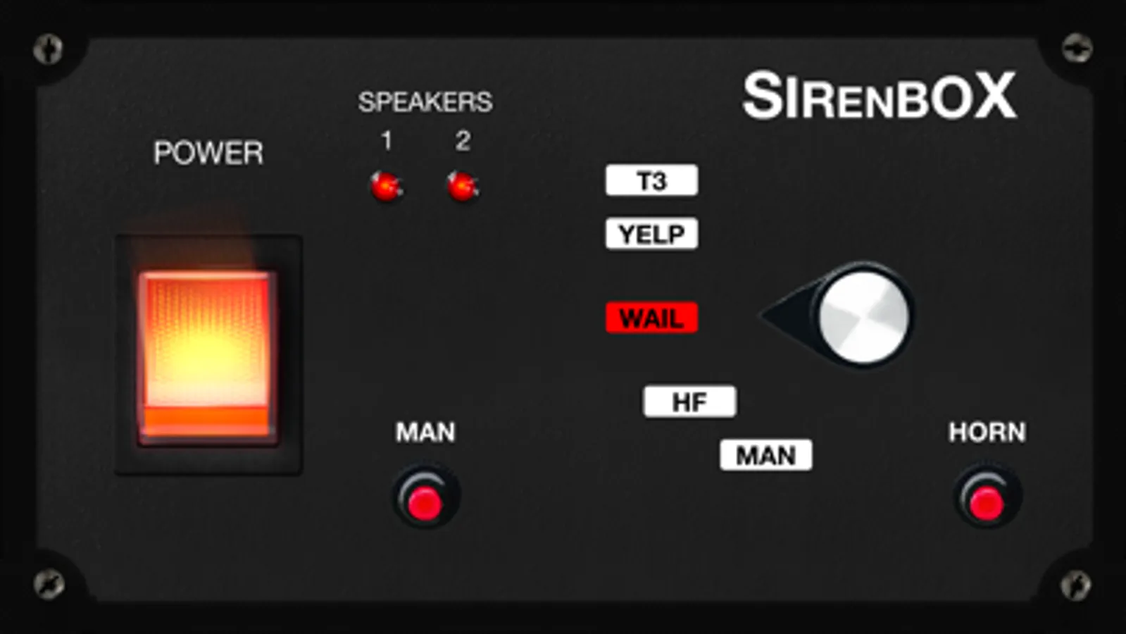 SirenBox is modeled after a real 200 watt electric siren control switch box with stunning graphics and digital high quality audio recordings of the most popular sirens: