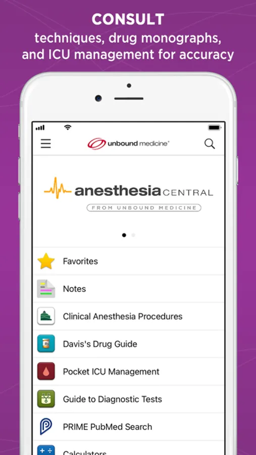 Anesthesia Central is a must-have resource for every anesthesiologist, critical care specialist, nurse anesthetist, and trainee. Consult the automatically updating collection of disease, drug, test, and procedure information for treating patients before, during, and after surgery. Download to your mobile device and use the quick-read format to find answers fast or search for journal articles and citations in the full PubMed database – anytime, anywhere.