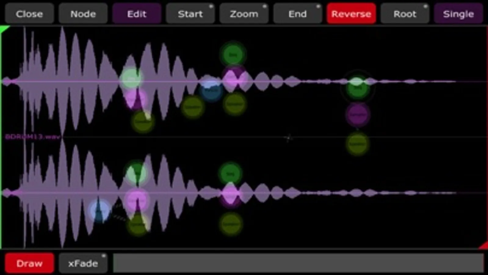 - Zoomable sampler editor with several loop modes (normal, 1 shot, ping, granular)