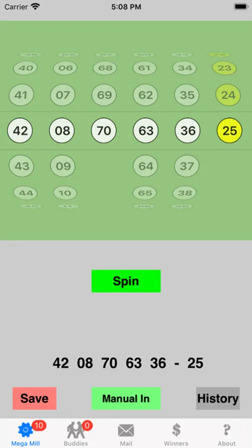 You can send all your generated/selected numbers from the History database to all your Buddies with a single push of a button. If your buddy has the iMegaBuddy App as well, he/she can import those numbers from received email into his/hers History database and can check numbers without you.