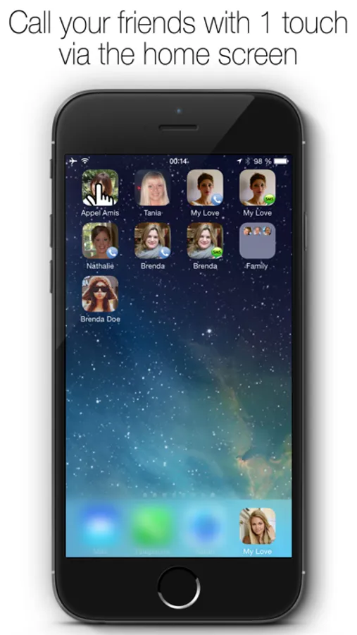 With "Call my friends" you can add pictures of your boyfriend / girlfriend, your friend (s), family (...) on the screen desktop of your iPhone with the icon and the name of your choice (see screenshots).