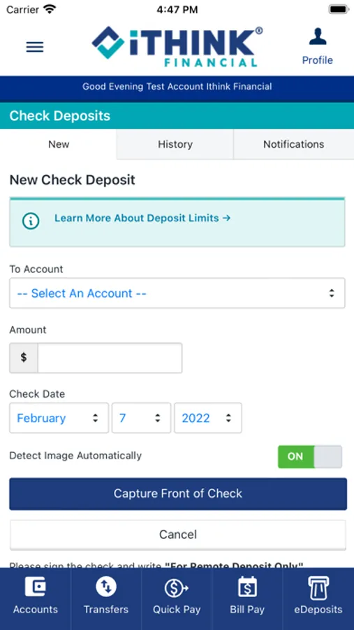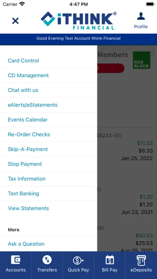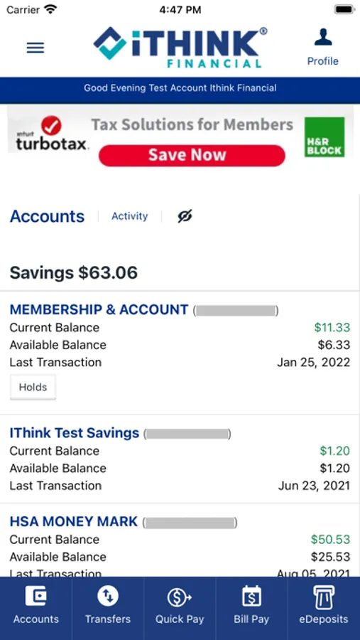 4. Deposit checks 5. Pay bills and iTHINK Financial loans