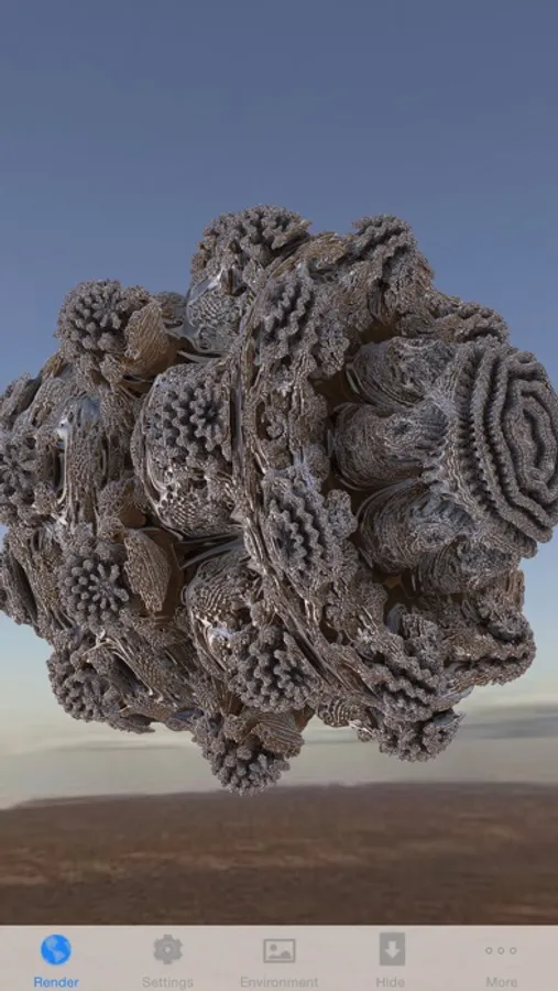 Fractals are self-similar mathematical shapes in complex space. The Mandelbulb fractal is a 3-dimensional analog of the Mandelbrot set using an hypercomplex algebra based on spherical coordinates. This app uses the graphics chip of the iPhone 3GS or iPhone 4 to compute a 3D image of the fractal by ray tracing using OpenGL ES 2.0 shaders.