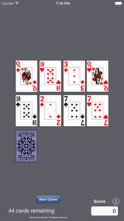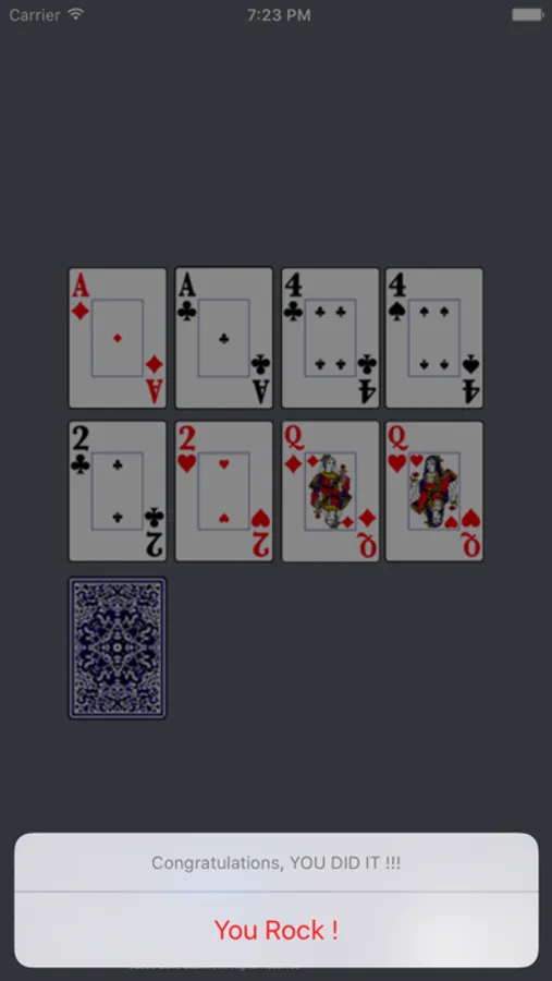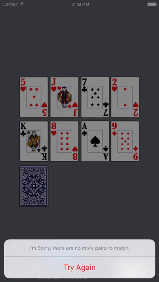 In the game, you deal 8 cards on to the table. Now in those 8 cards you look to see any pairs that are in the piles. When you see a pair, you then deal a card from the deck to cover both the cards that make up the pair. You continue this till either