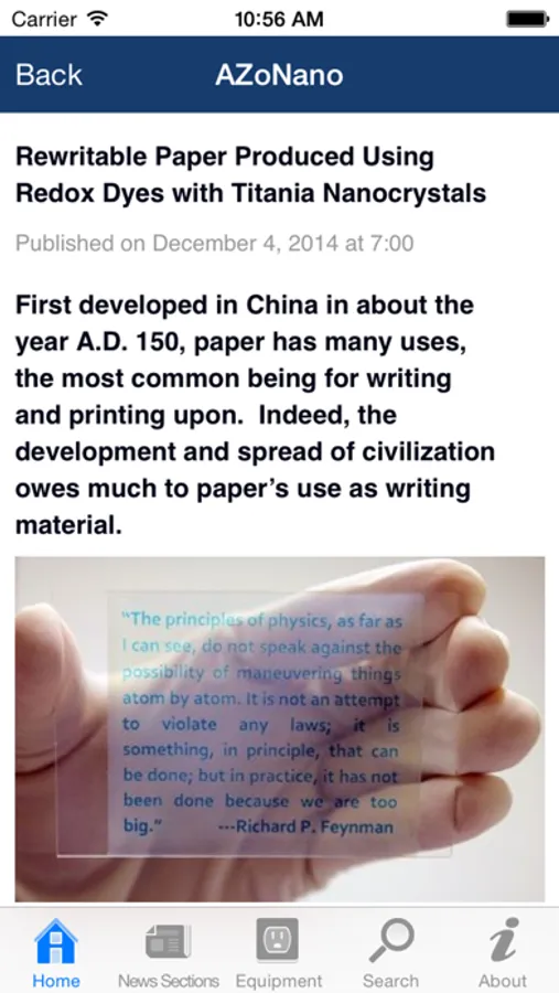 The AZoNanotechnology App from www.azonano.com – The A to Z of Nanotechnology, represents the world of Nanotechnology in the palm of your hand.