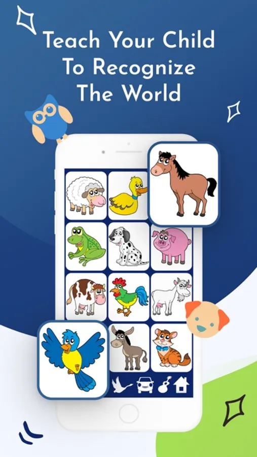 Each tile you touch opens up and reveals an exciting picture that plays a sound. The images rotate so that children can learn to identify the object, not just the single image that is shown.