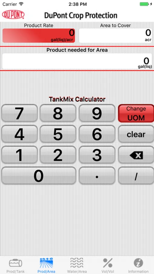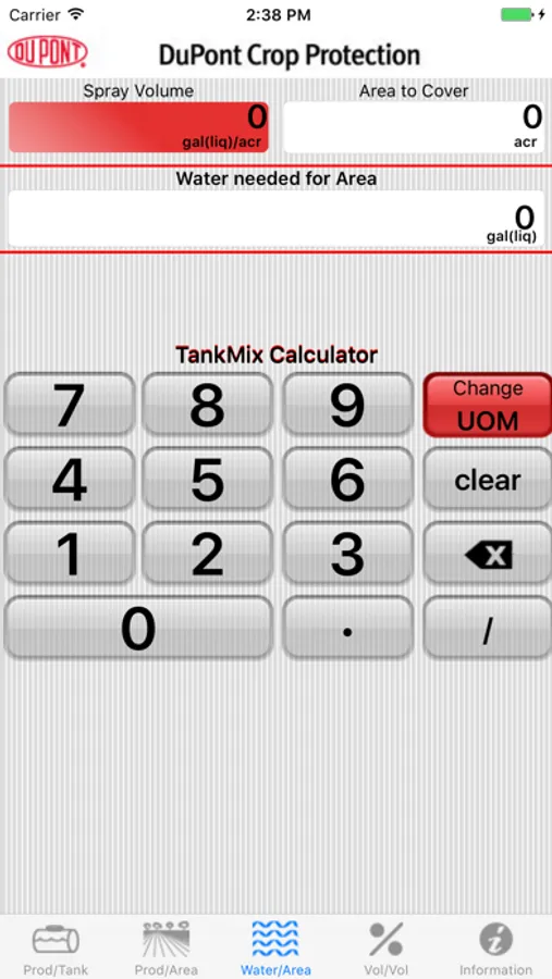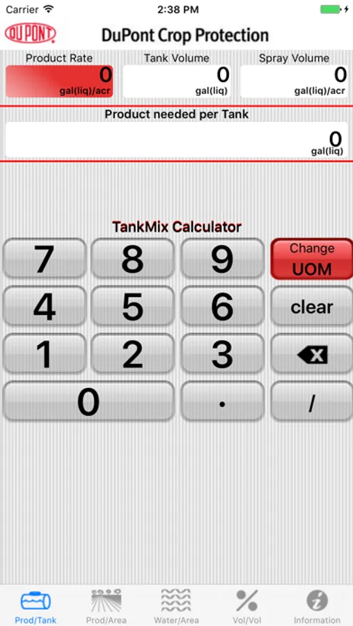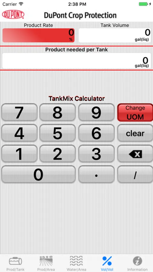 The DuPont TankMix Calculator Application allows you to easily calculate the amount of product you will need to treat a specific field area, the amount of product you need to apply to a specific tank size, the amount of water you'll need to treat a specific field area or the amount of product you need to get the desired Volume to Volume ratio.