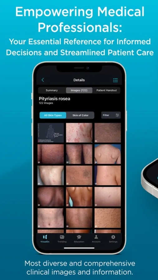 Improve patient engagement and satisfaction when you use VisualDx in the exam room and beyond. VisualDx is a visual reference tool for medical professionals that leverages AI technology and a comprehensive image atlas to improve medical decision-making worldwide.