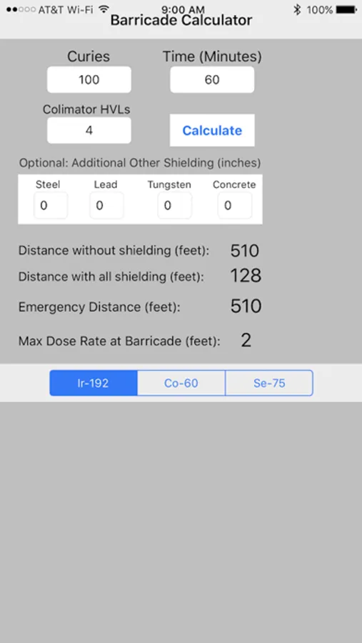 This app is very simple to operate. You simply enter the curies, choose the source, and the shot time in minutes (if less than 60). Hit the Calculate button and you are done.