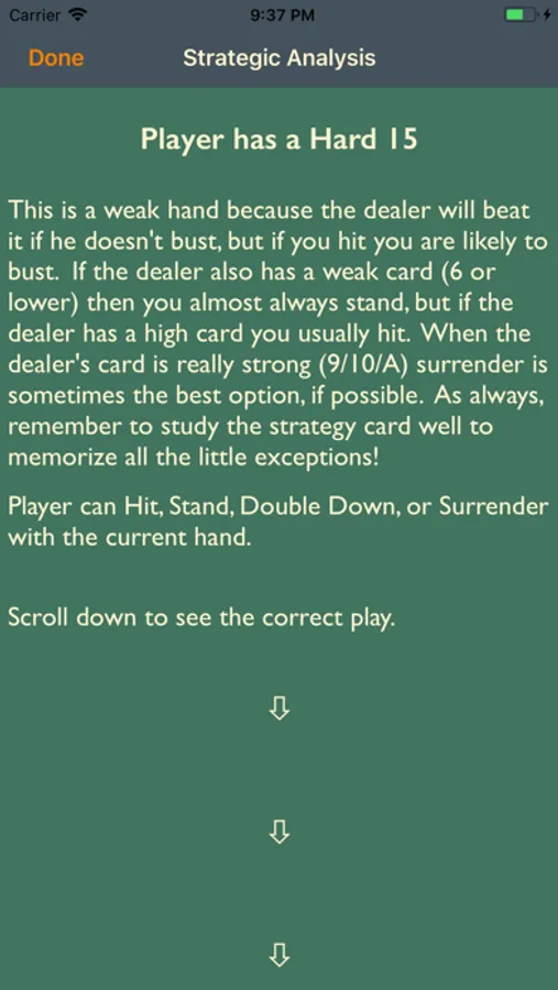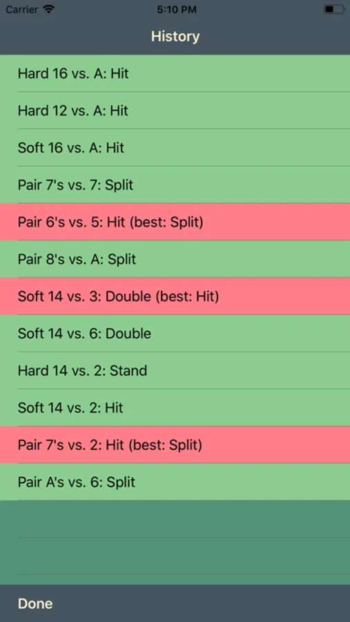 - Four learning modes: random hands, soft hands, pairs, and a new Custom mode: choose any combination of hands to practice (paid upgrade).