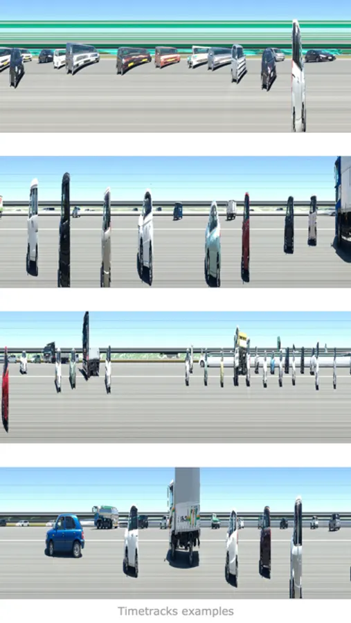 Timetracks is a camera image-capture application which uses a slit-scan technique. Like an image scanner, it generates a unique effect over a certain defined duration - moving objects and changing scenes will produce interesting photographs.