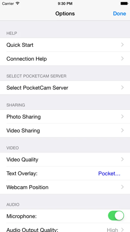 ** IMPORTANT ** Please turn off Bluetooth on the device (Settings→General→Bluetooth) before using PocketCam. Otherwise, you may experience frame drops/freeze.