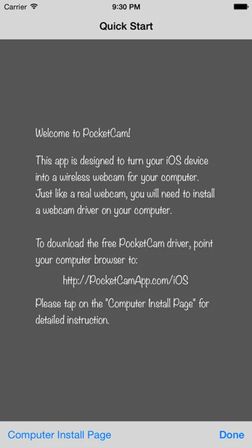 1. If you have not already done so, download and install the PocketControl for Windows or Mac software from our website: http://www.senstic.com/iPhone/PocketCam/PocketCam.aspx