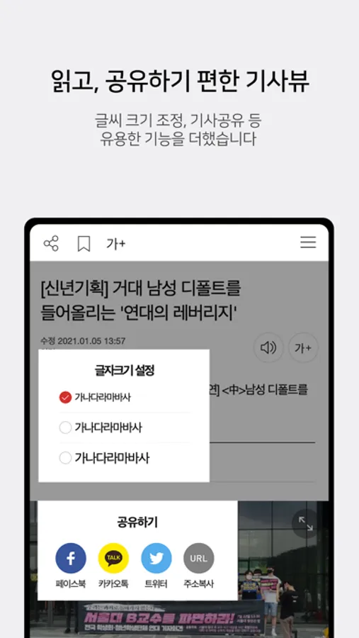 -사용자의 편의를 위해 북마크 기능과 페이스북, 카카오톡, 트위터 등 SNS공유 기능을 지원합니다.