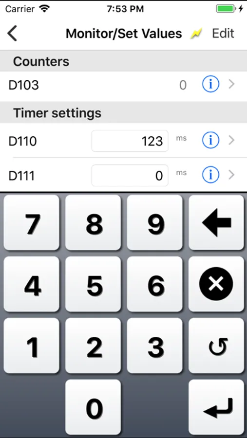 You can switch on/off bit devices with buttons and change values of word devices with slider controls.