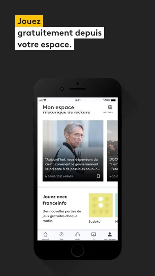 • Profitez aussi des nouveaux services gratuits : prévisions météo en direct et à 7 jours, les jeux en ligne avec le sudoku, les mots fléchés, le solitaire et bien d'autres à découvrir sur franceinfo