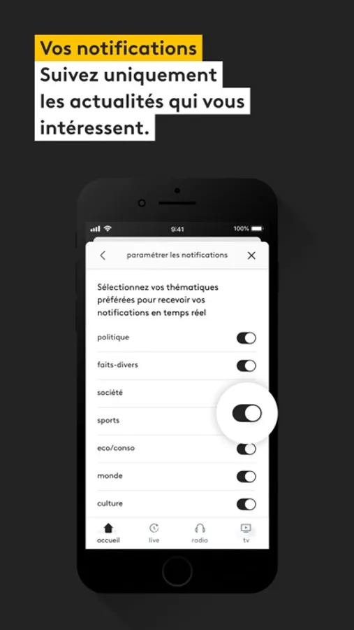 Plutôt actualité économique et culturelle que sportive et scientifique ? Personnalisez vos notifications pour ne recevoir que l’actu qui vous intéresse.