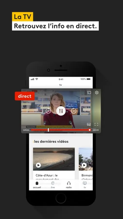 • Radio en direct : écoutez la radio franceinfo, les journaux, interviews, débats et reportages, pour vous tenir au courant de toute l’actualité.
