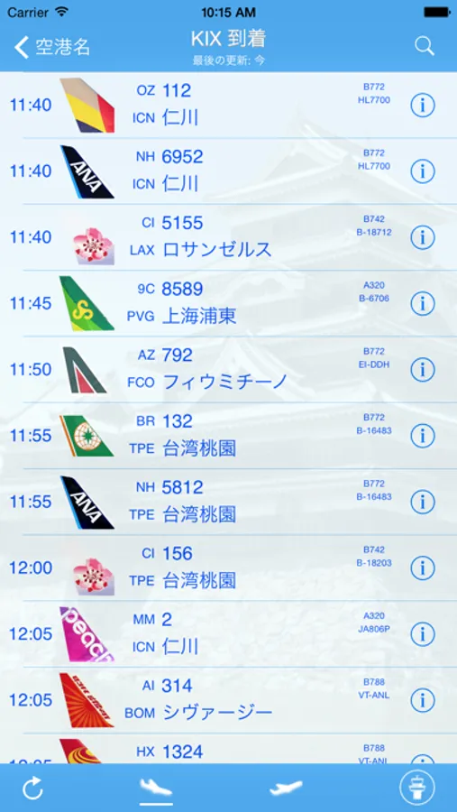 リアルタイムの関西国際空港フライト情報