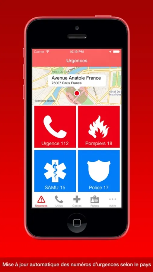 Grâce à l'application Urgences vous pouvez contacter directement les secours que vous soyez en Europe, aux Etats-Unis ou au Canada, l'application s'adapte à vous.