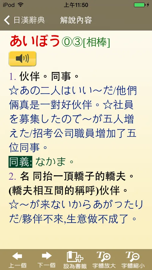 1.日漢(繁體中文)辭典,收錄字彙8萬餘(標準語調、複合語語調、詞性變化語語調)。