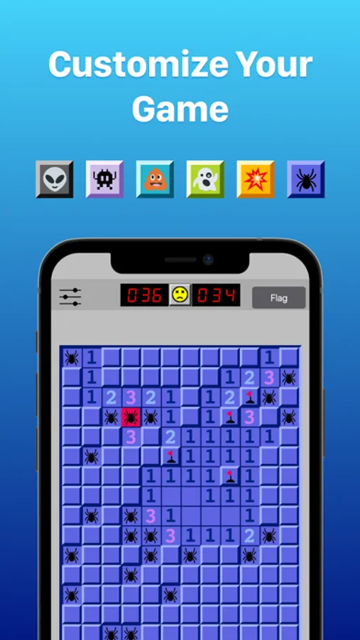 How to Play: Start with a covered mine field of square tiles and clear the field by tapping one square at a time. Beneath each tile is is either a number to indicates how many mines are touching the tile, a blank space, or a mine that will explode when tapped. Use strategy and logic to navigate the mine map and win the game!