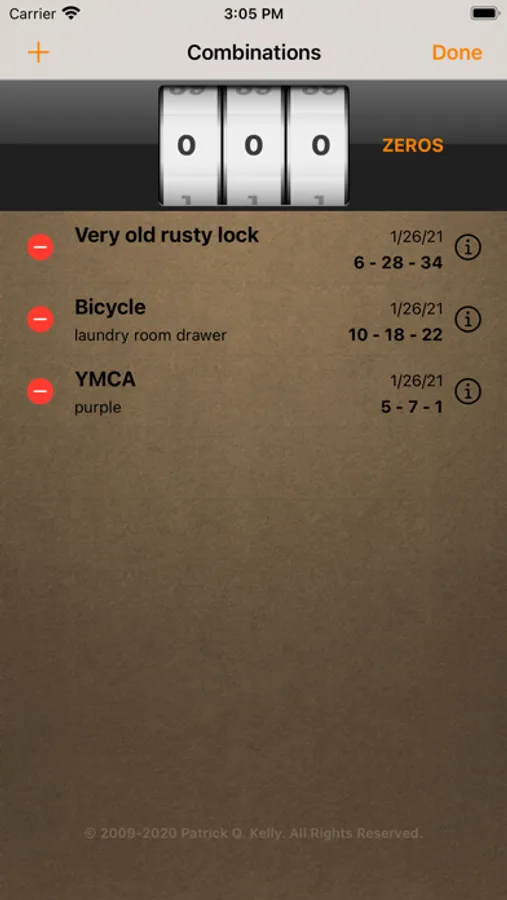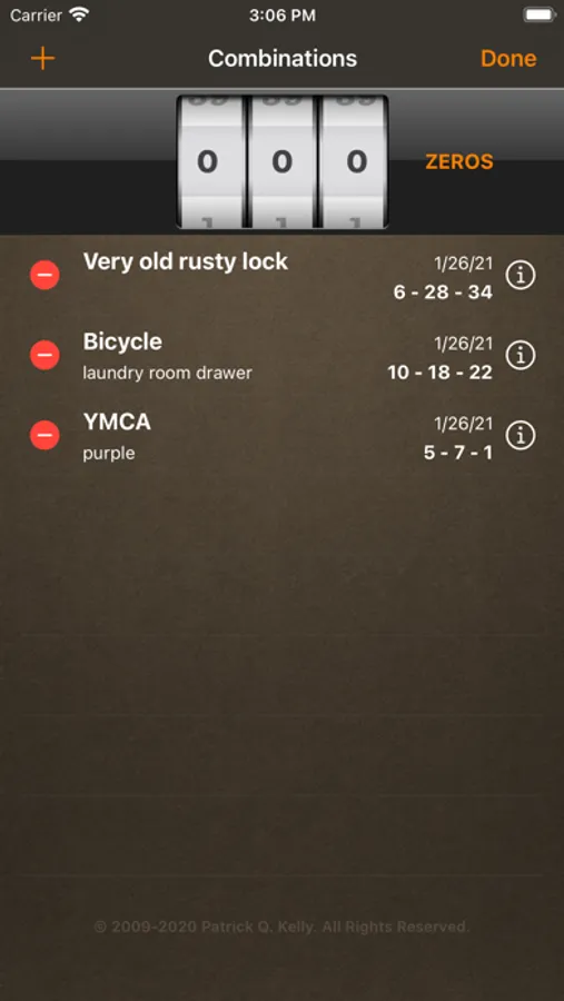 Lock Master keeps track of your lock combinations.