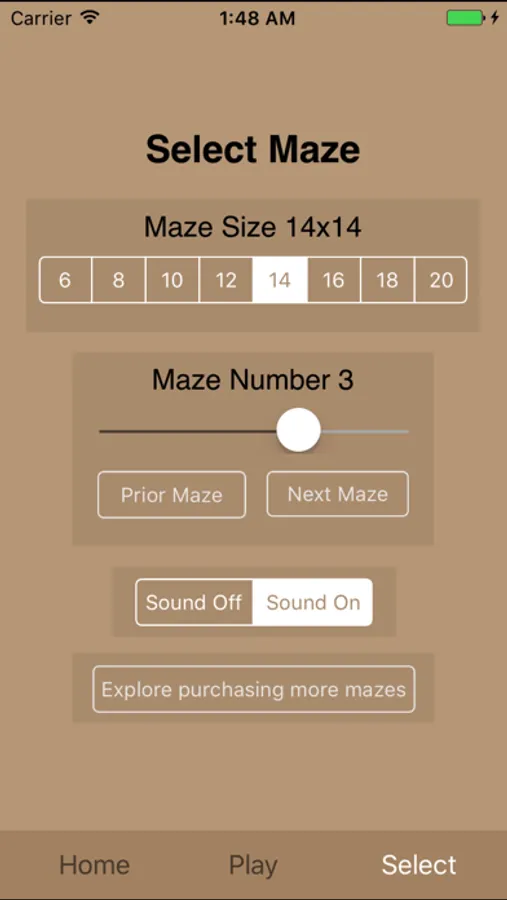 * iPhone - Easy 6x6 mazes to hard 20x20 mazes