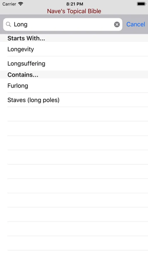 The entire Nave's Topical Bible concordance on your iPhone/iPod Touch. With 5,324 topics and over 65,000 verse and cross references, this is a valuable study resource at your finger tips - fast and easy to use.